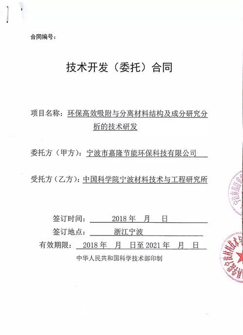 寧波市嘉隆節能環保科技有限公司(以下簡稱“公司”)于近日與中國科學院寧波材料技術與工程研究所簽署了《環保高效吸附與分離材料結構及成分研究分析的技術研發》。合同簽署后公司與中科院進行了深入的溝通,啟動了相關項目的科研工作,現將合作環保高效吸附與分離材料結構及成分研究分析的技術研發項目的相關事宜公告如下: